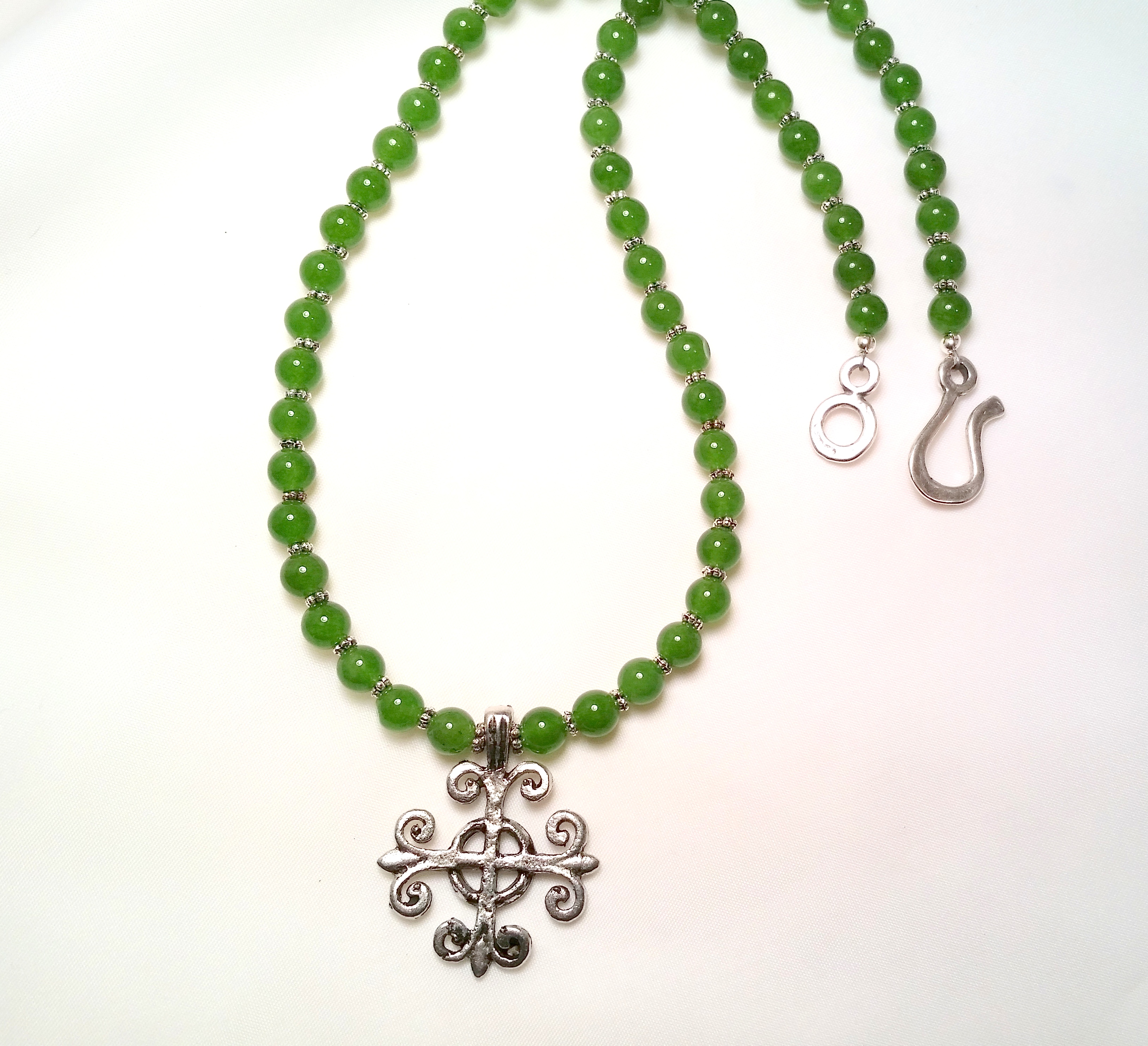 Green Jade necklace with Celtic pendant