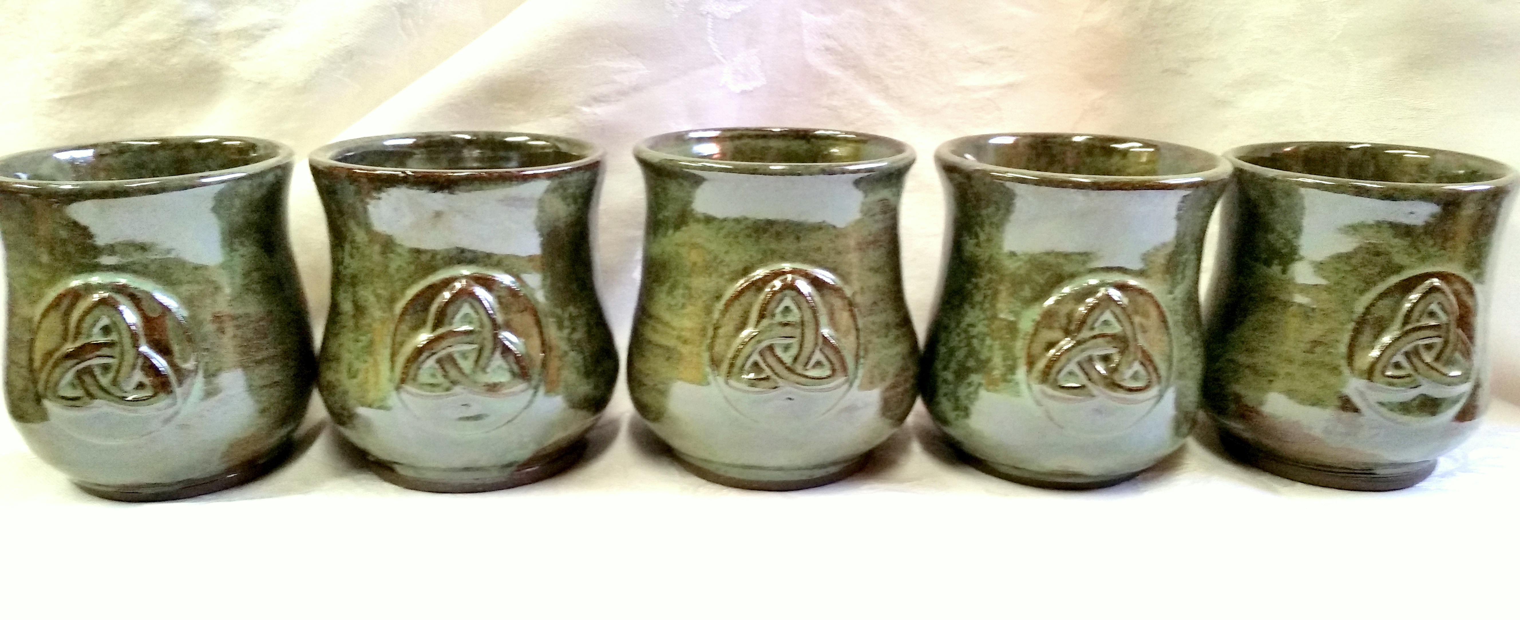 Stoneware mead mugs with Celtic trinity